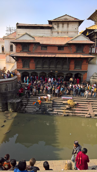 The departed overnight are taken to the center of Kathmandu and prepared for cremation.